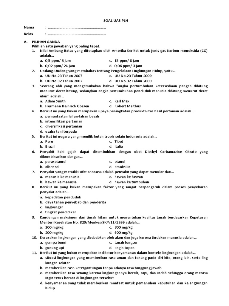 Soal Plh Kelas 3 Semester 1 - Ujian Tengah Semester 1 Kelas Iii Pendidikan Lingkungan Hidup Tulungagung Pdf - File soal pts kelas 3 semester 1 ini berformat pdf.